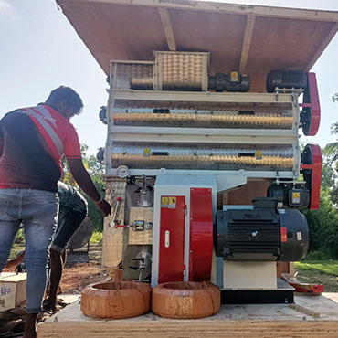 The machine is 100-200 kg/h electric flat die feed pellet making machine for our Tanzania's customer.